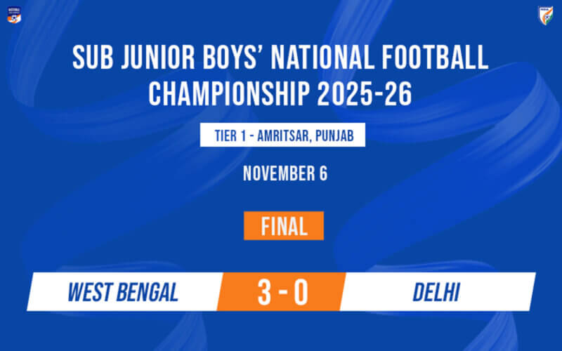 NEW DELHI: West Bengal won the Sub Junior Boys' National Football Championship 2025-26 Tier 1 title for a record-extending 14th time after outclassing Delhi 3-0 in the final on Thursday, November 6, 2025, at the Sri Guru Hargobind Sahib Football Stadium in Amritsar, Punjab.
